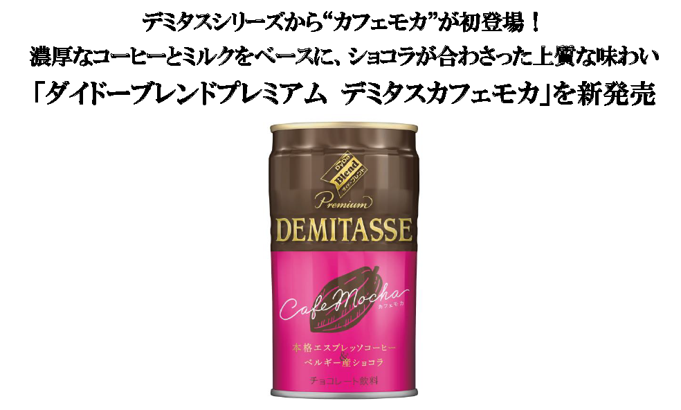 ダイドードリンコ株式会社(本社:大阪市北区、代表取締役社長:中島 孝徳) は、 202 3 年 秋冬 の新商品として、 「 ダイドーブレンドプレミアム デミタスカフェモカ 」 を 8 月 2 8 日(月)より 発売いたします。