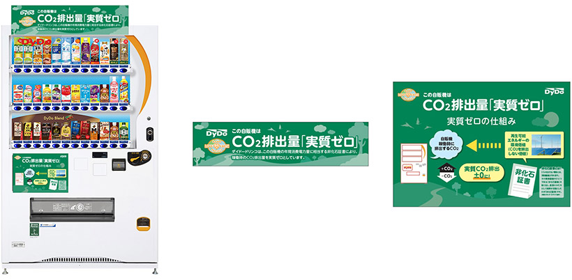 なお、本取り組みの開始にあたり、当社拠点に設置している自販機8台に対し、「再エネ指定の非化石証書※」により稼働時のCO2排出量を実質ゼロにしてまいります。