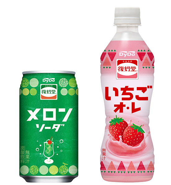 2021年春夏の新商品として、3月1日(月)より「復刻堂 メロンソーダ」が、3月29日(月)より「復刻堂 いちごオ・レ」がダイドードリンコより、それぞれ発売いたします。