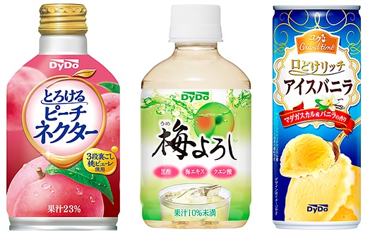 2月25日(月)より「とろけるピーチネクター」が、3月18日(月)より「梅よろし」,「コクグランタイム 口どけリッチアイスバニラ」がそれぞれダイドードリンコより発売となります。