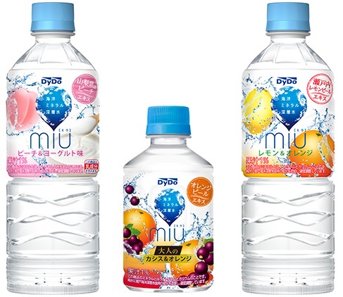 3月12日(月)より「miuピーチ&ヨーグルト味」、「miu大人のカシス&オレンジ」、「miuレモン&オレンジ」3品がダイドードリンコより発売となります。