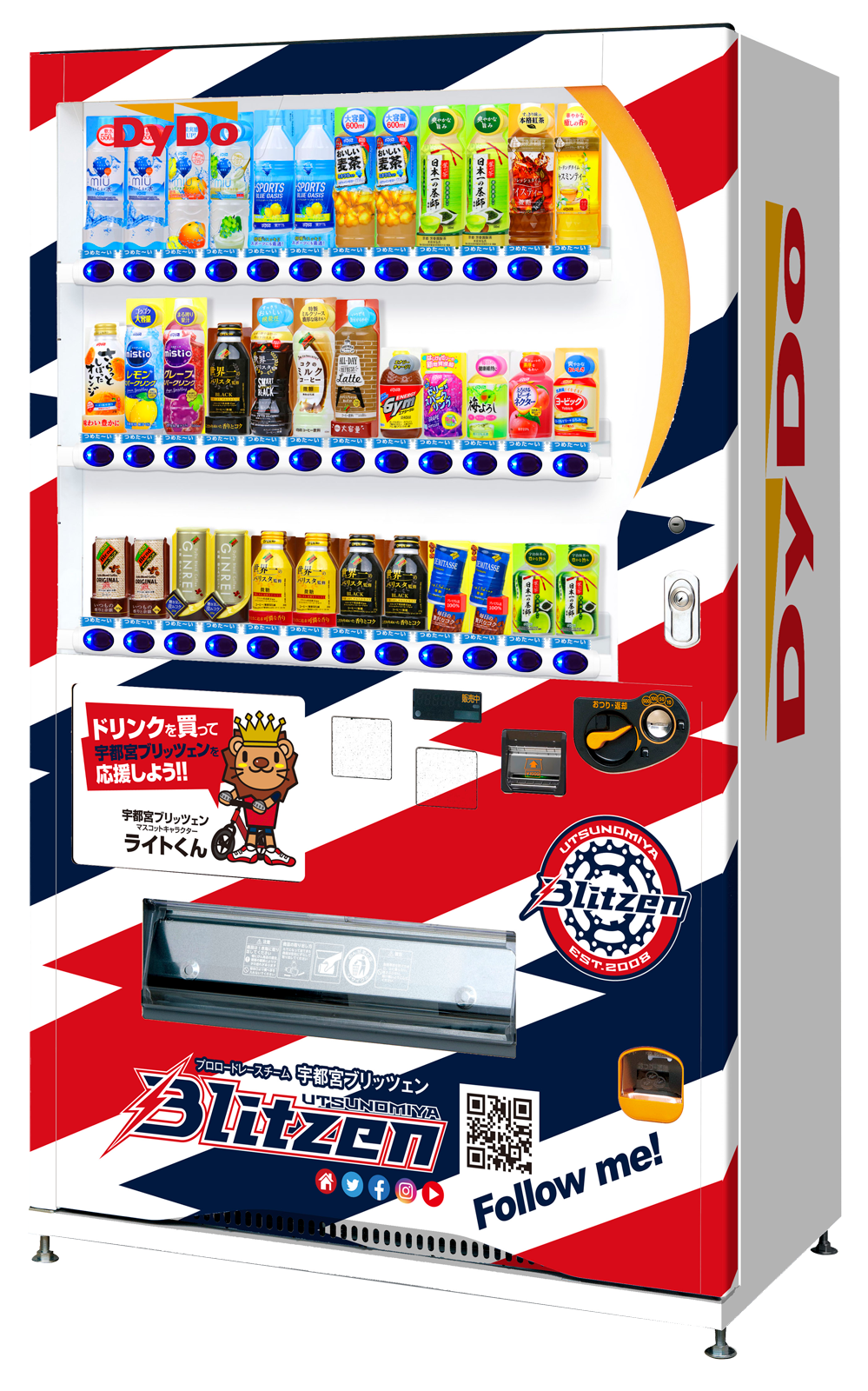 ダイドードリンコサービス関東は、地元栃木県で活動するプロサイクリングチーム「宇都宮ブリッツェン」、小山市で活動するサッカーチーム「FC CASA」、佐野市に本部を置く「日本クリケット協会」の活動を支援するべく、ドリンクの売り上げの一部をチームの運営資金として拠出する、支援付き自販機を県内各地に設置しています。